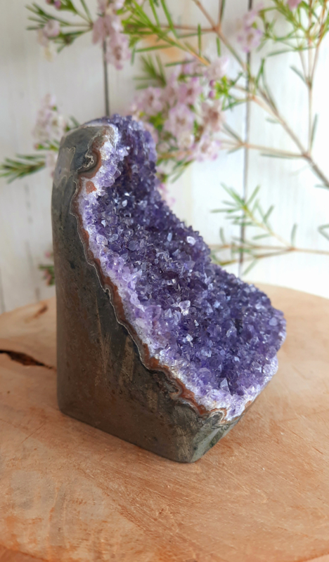Amethist uit Uruguay van 486 gram en 7,5x8,5x6,5 cm