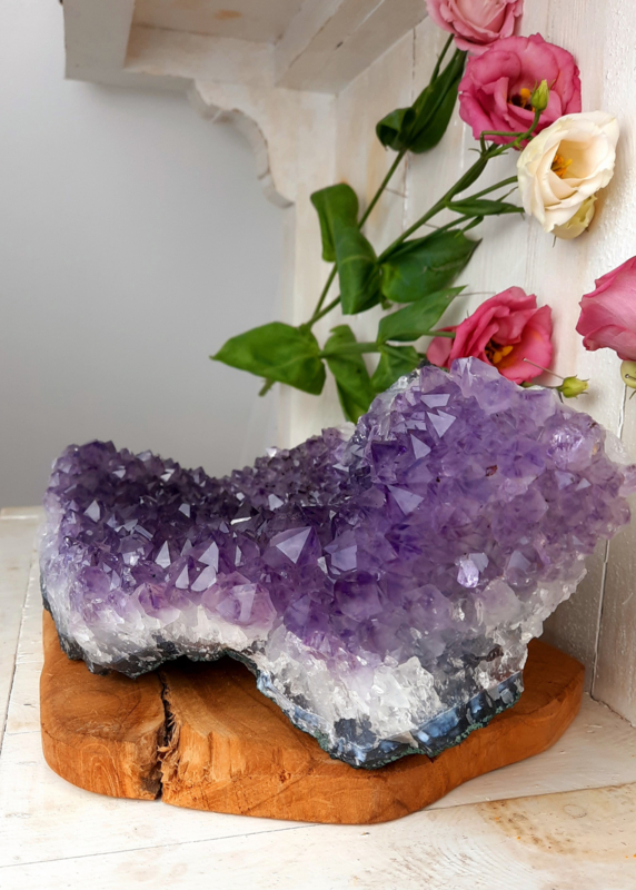 Het is een zeer geschikte steen voor mensen die hun intuïtie en spiritualiteit willen ontwikkelen. De Amethist is een goede steen voor meditatie en kan ondersteunen met in contact komen van hogere energieën, bijvoorbeeld gidsen. Fysiek werkt de Amethist positief op het zenuwstelsel, de hersenen, kneuzingen en helpt bij slaapproblemen ( o.a. nachtmerries ), hoofdpijn en migraine.