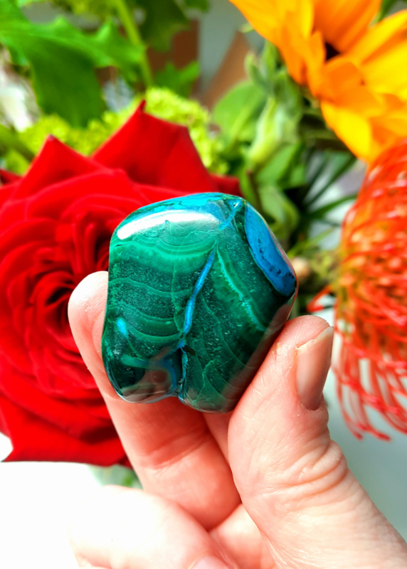 N.B.: Malachiet kan in uitzonderlijke gevallen lichte hartkloppingen veroorzaken, verwijder het dan en vervang het door Rozenkwarts of Rhodoniet.