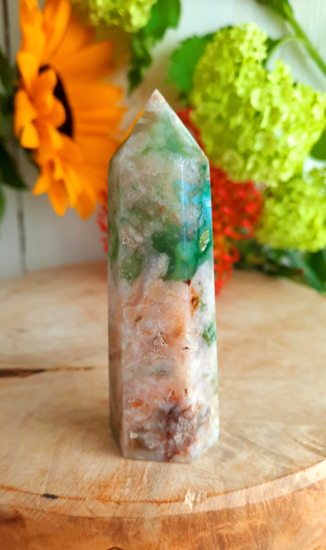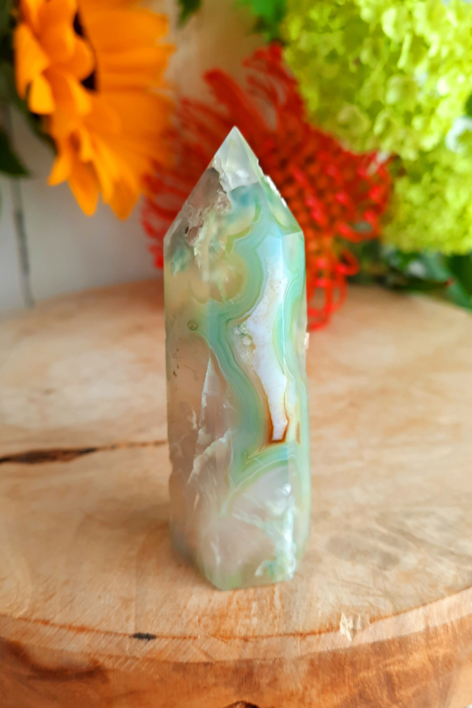 Apatiet punt met standaardApatiet punt van 163 gram zonder standaard en 13x3,8x3 cm, met standaard 283 gram en 19,5x6 cm.